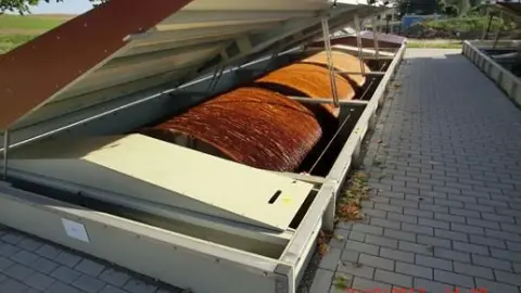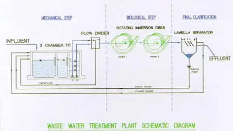 The biological film is exposed in turns to the ambient atmosphere and the waste water by the rotating disks . This results in an effective cleaning oft he residual water as well in terms of carbon degradation as nitrate degradation.